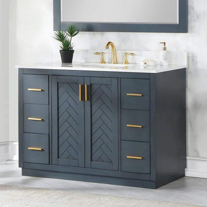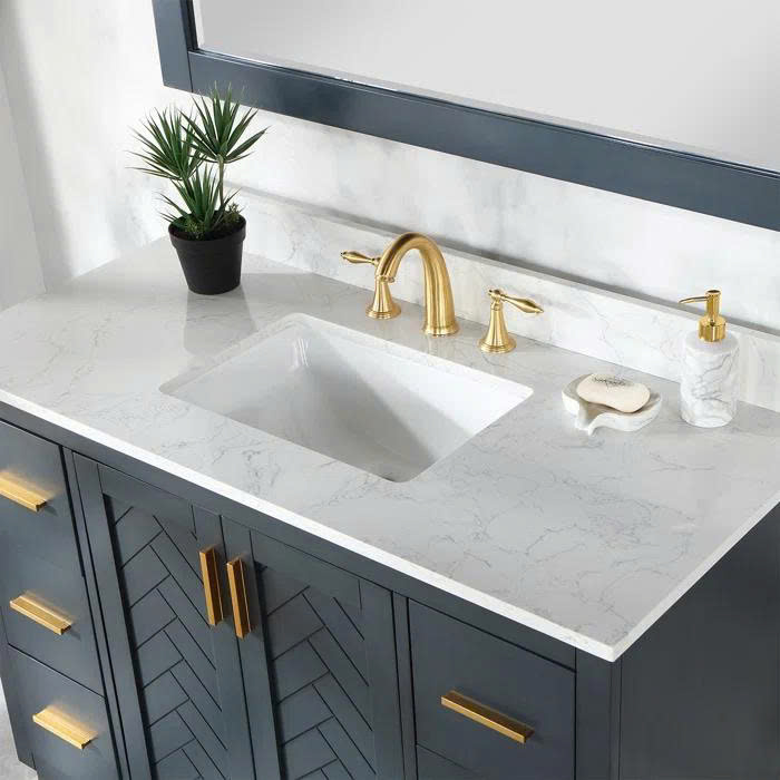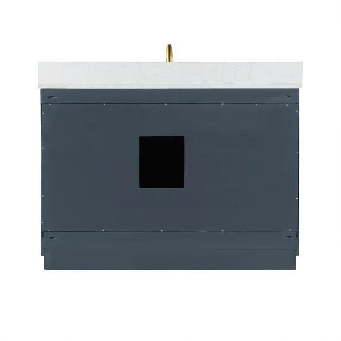 Gazsi 48" Single Bathroom Vanity Set With Grain White Engineered Stone Countertop Without Mirror