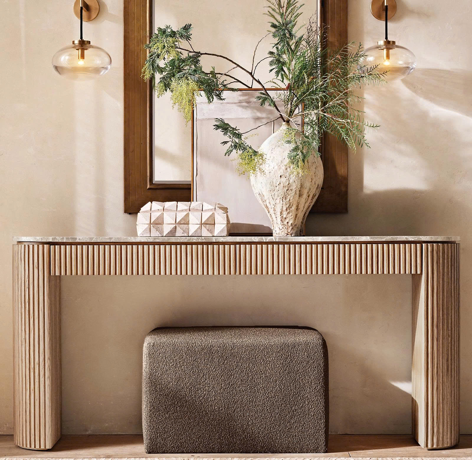 Aster 52" Reeded Console Table With Travertine Top